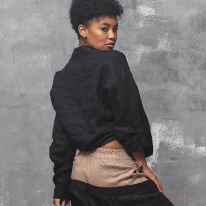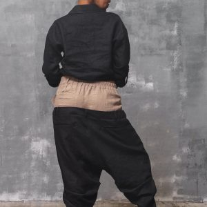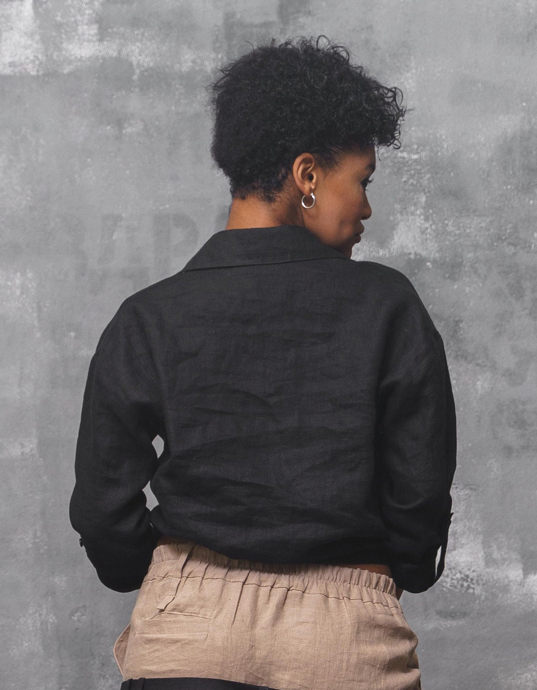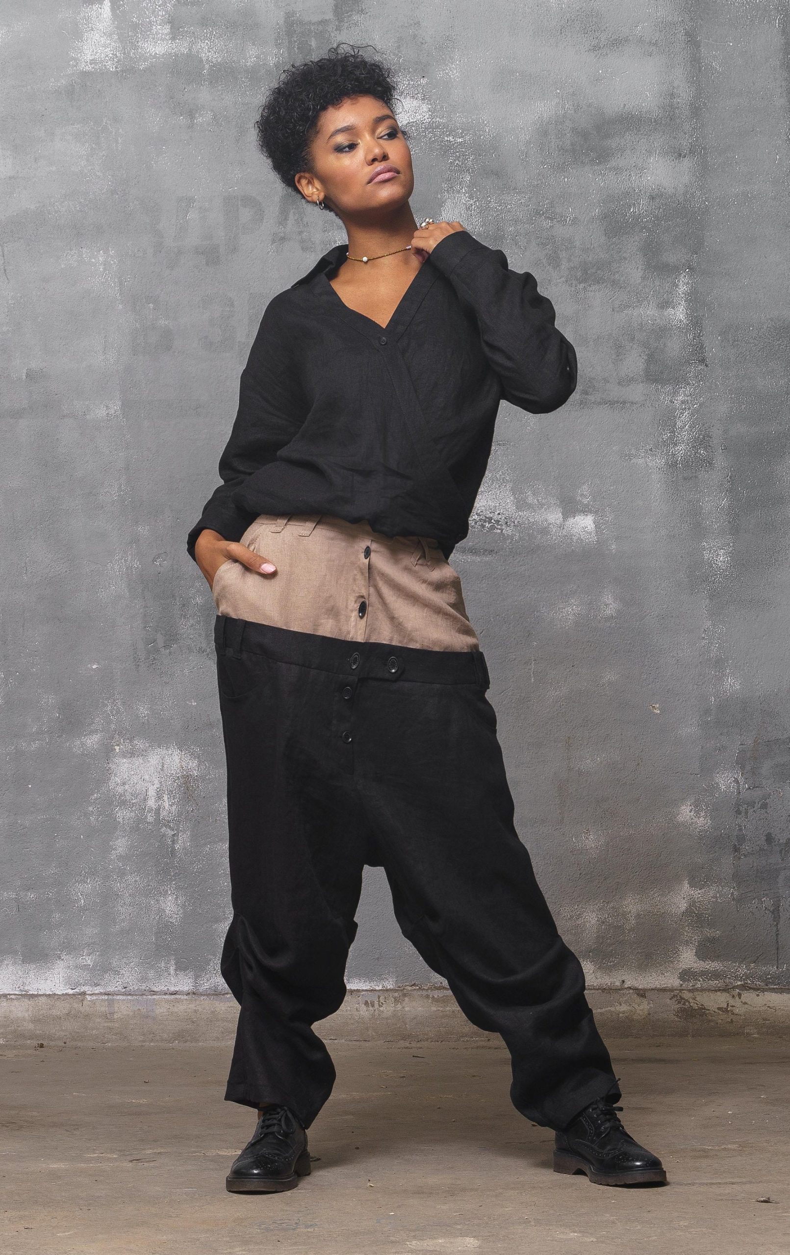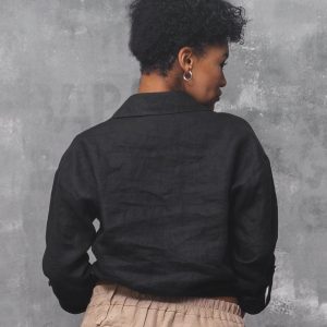 Black Linen Shirt: Long Sleeve Asymmetrical Blouse Organic