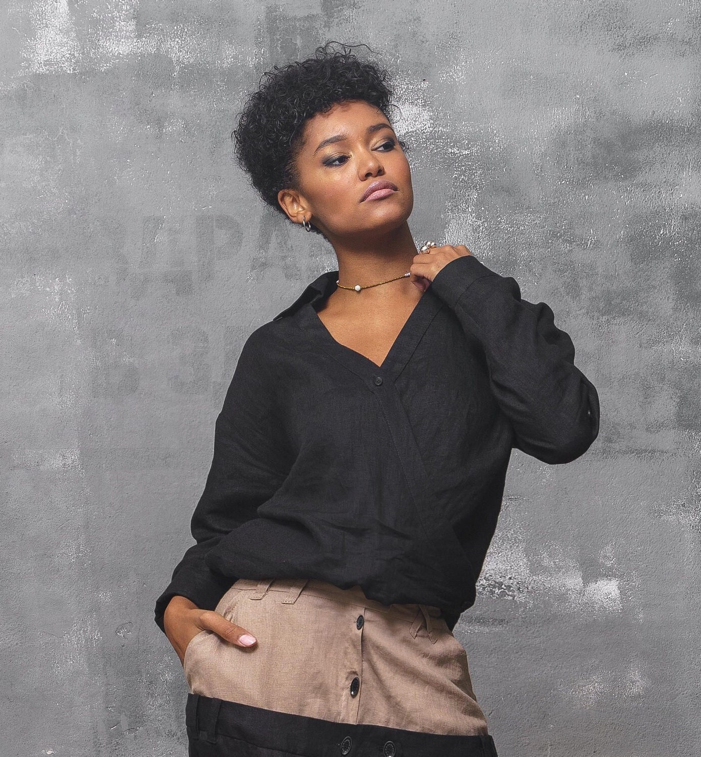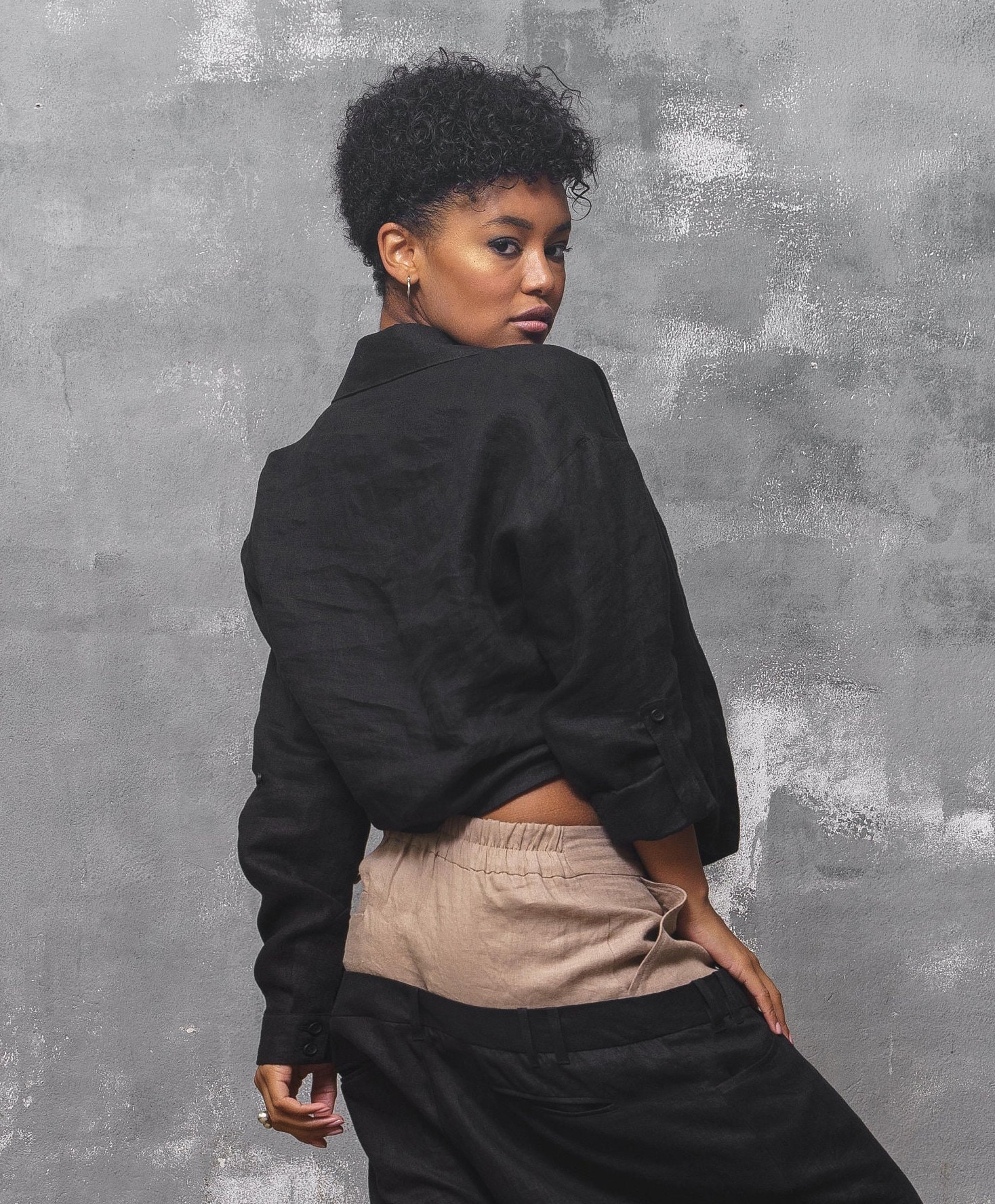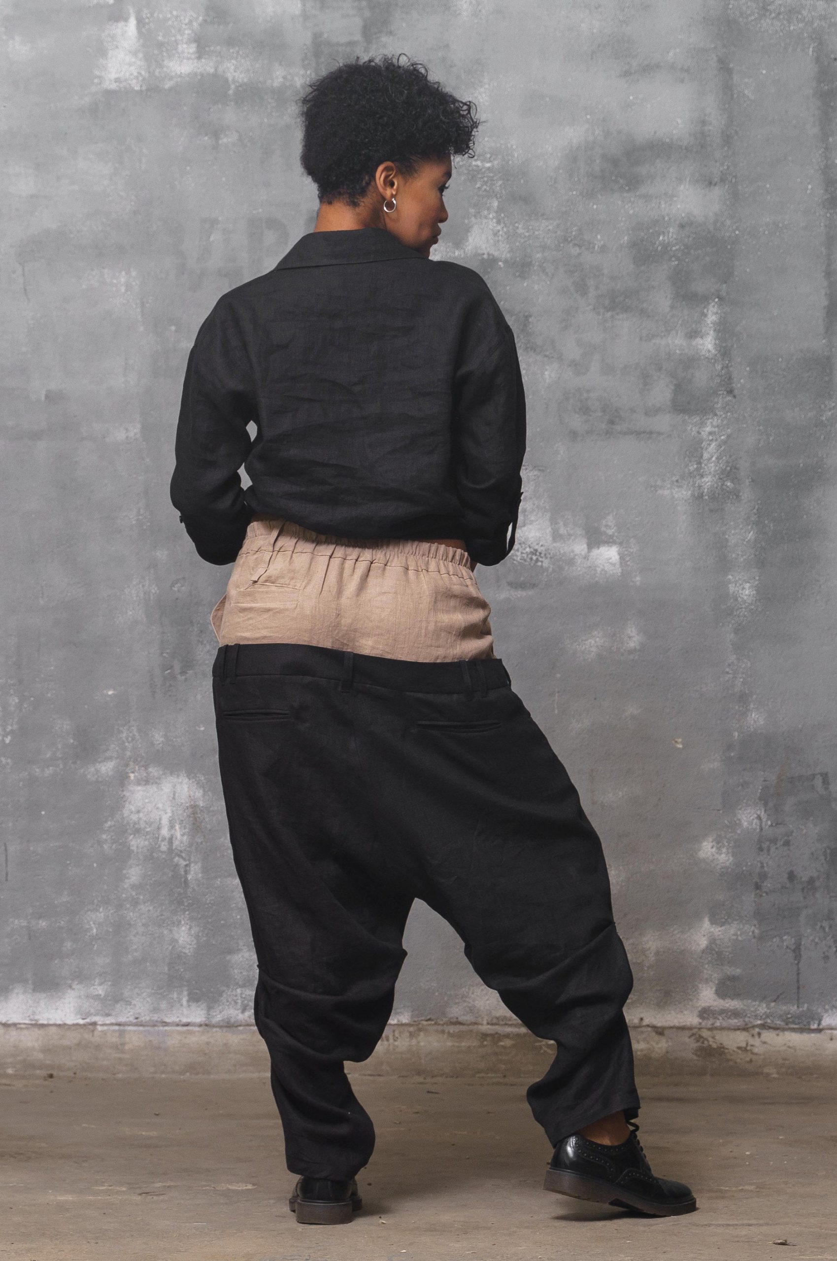 Black Linen Shirt: Long Sleeve Asymmetrical Blouse Organic