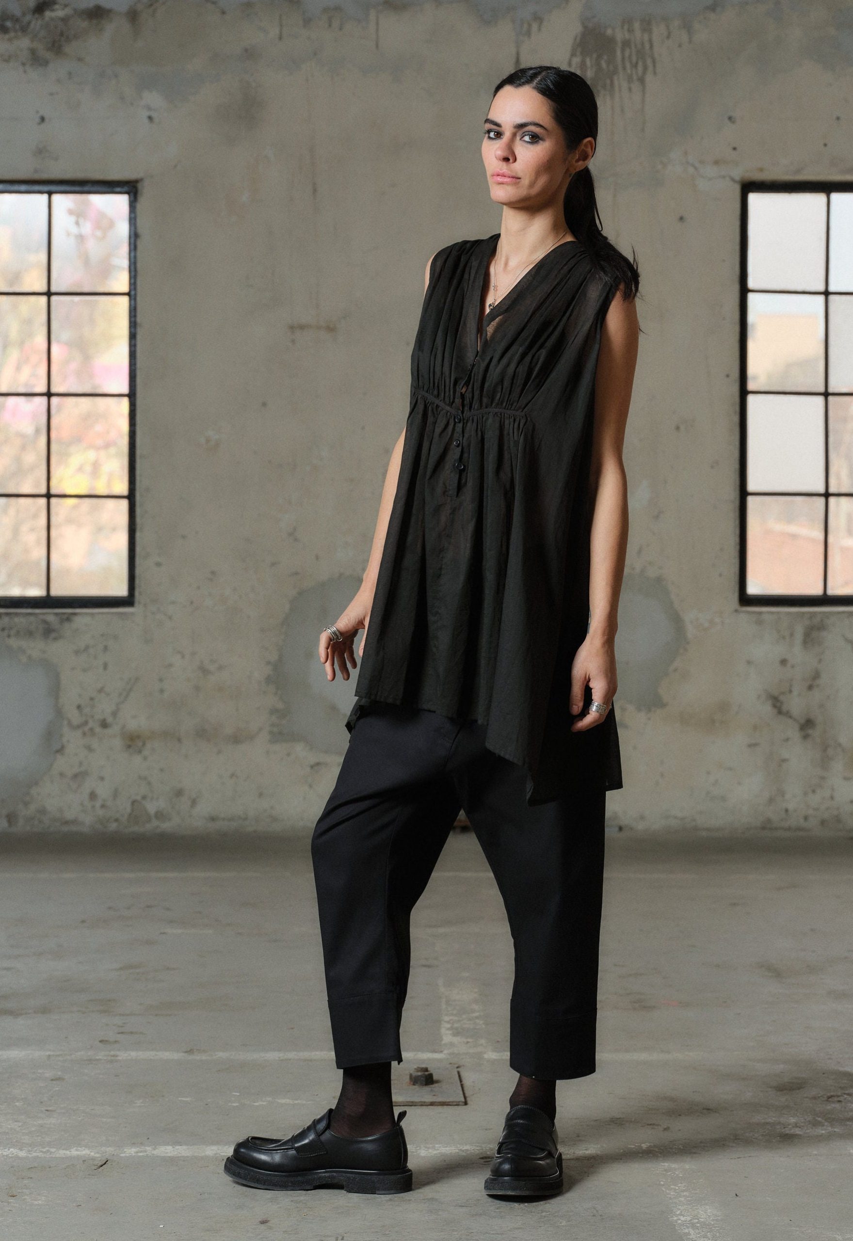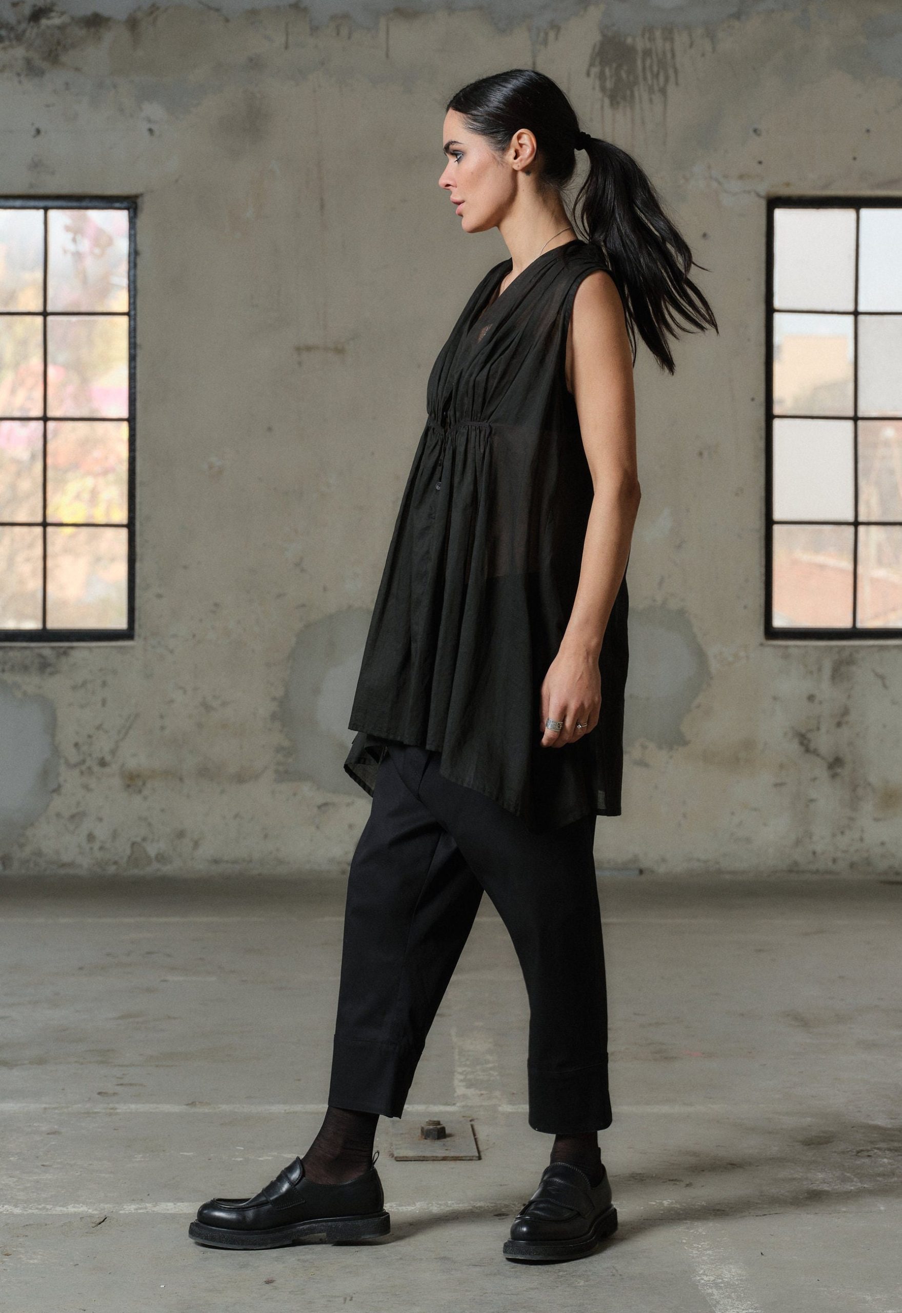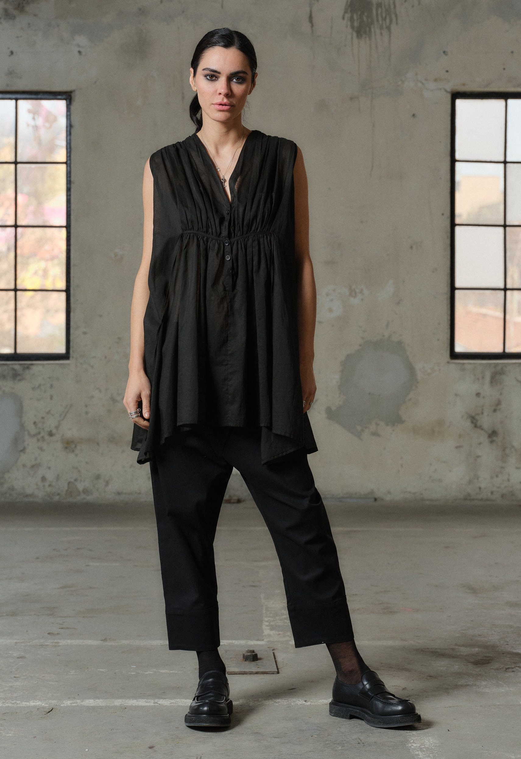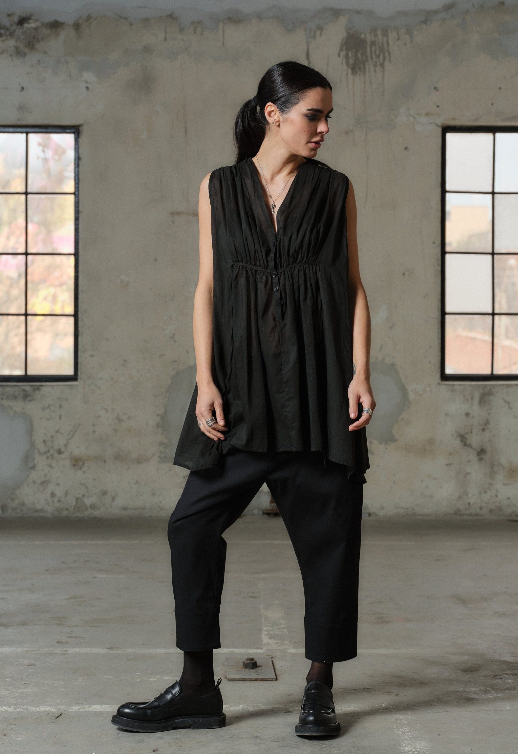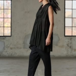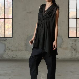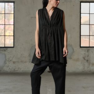 Organic Black Cotton Tunic Top Sleeveless Blouse Plus